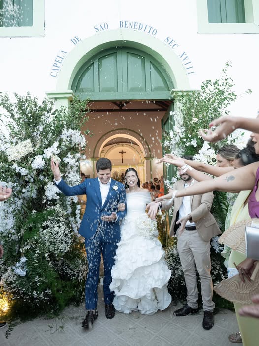 A recepção do casamento aconteceu na Pousada Igrejinha de Carneiros. O local escolhido foi a Capela de São Benedito que possui um valor afetivo para a família do noivo.