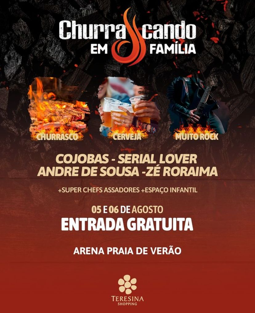Em comemoração ao dia dos pais o Teresina Shopping realizará um super evento com música ao vivo, churrasco e cerveja. O “Churrascando em Família” acontece nos dias 5 e 6 de agosto, a partir das 16h, na arena da Praia de Verão. A entrada é gratuita com consumação no local.