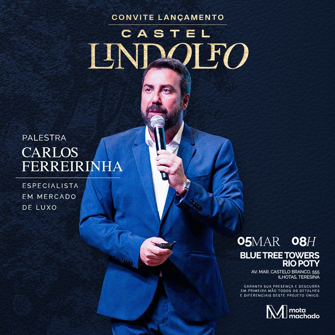 O mercado imobiliário de alto padrão em Teresina vive um novo momento e será pauta no próximo dia 5 de março. A Mota Machado promove o lançamento do empreendimento Castel Lindolfo, em evento no Blue Tree Towers Rio Poty, que terá como destaque a palestra de Carlos Ferreirinha, um dos principais nomes do mercado de luxo na América Latina.