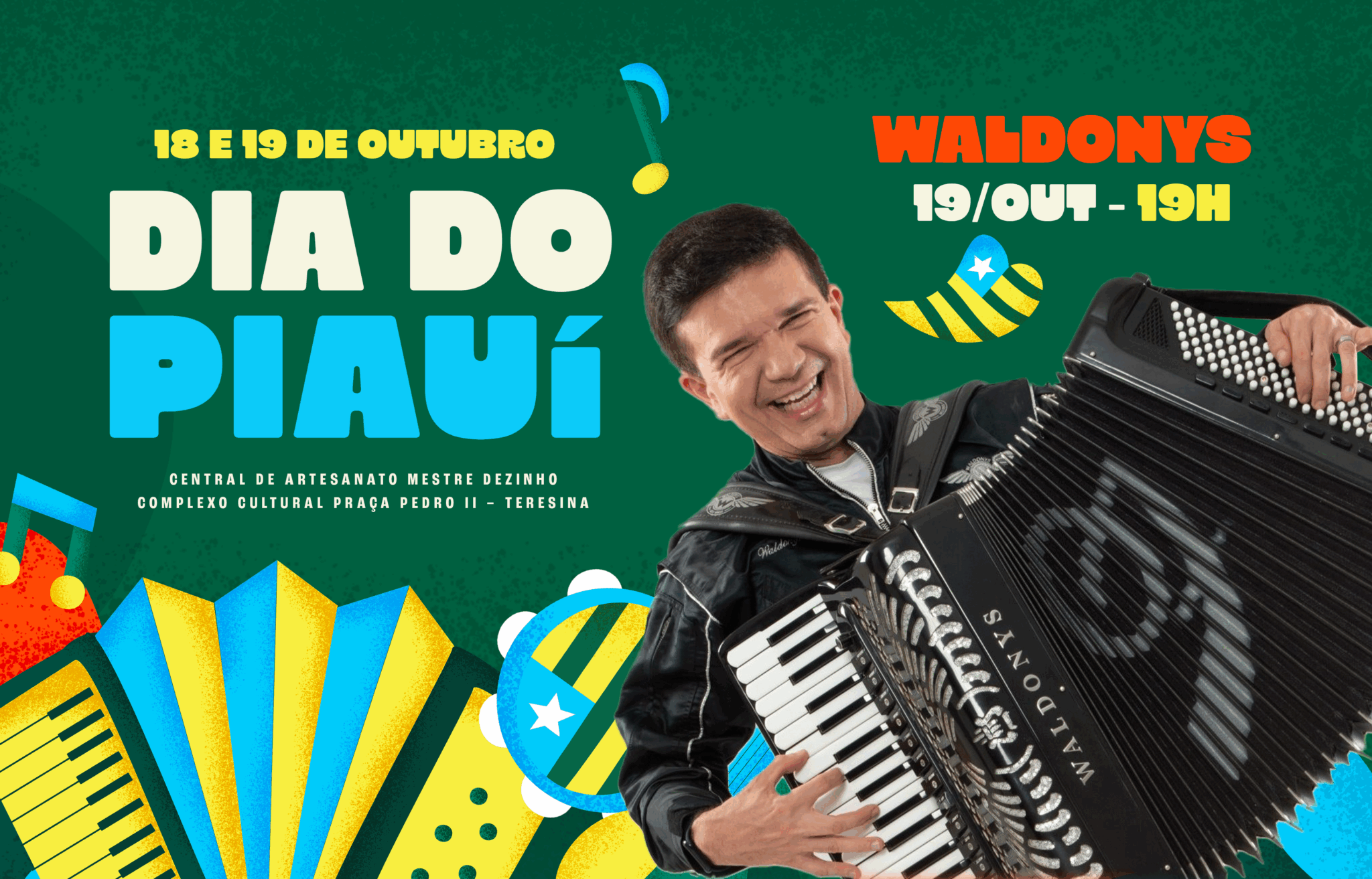 O cantor e sanfoneiro Waldonys, um dos grandes nomes da música nordestina, é mais uma atração confirmada para as comemorações do Dia do Piauí neste domingo (19), no Adro da Igreja São Benedito, no Centro de Teresina. Reconhecido nacionalmente, o artista se junta a nomes piauienses em uma programação que celebra a identidade, a cultura e a arte local com música, feira, gastronomia e muita animação.